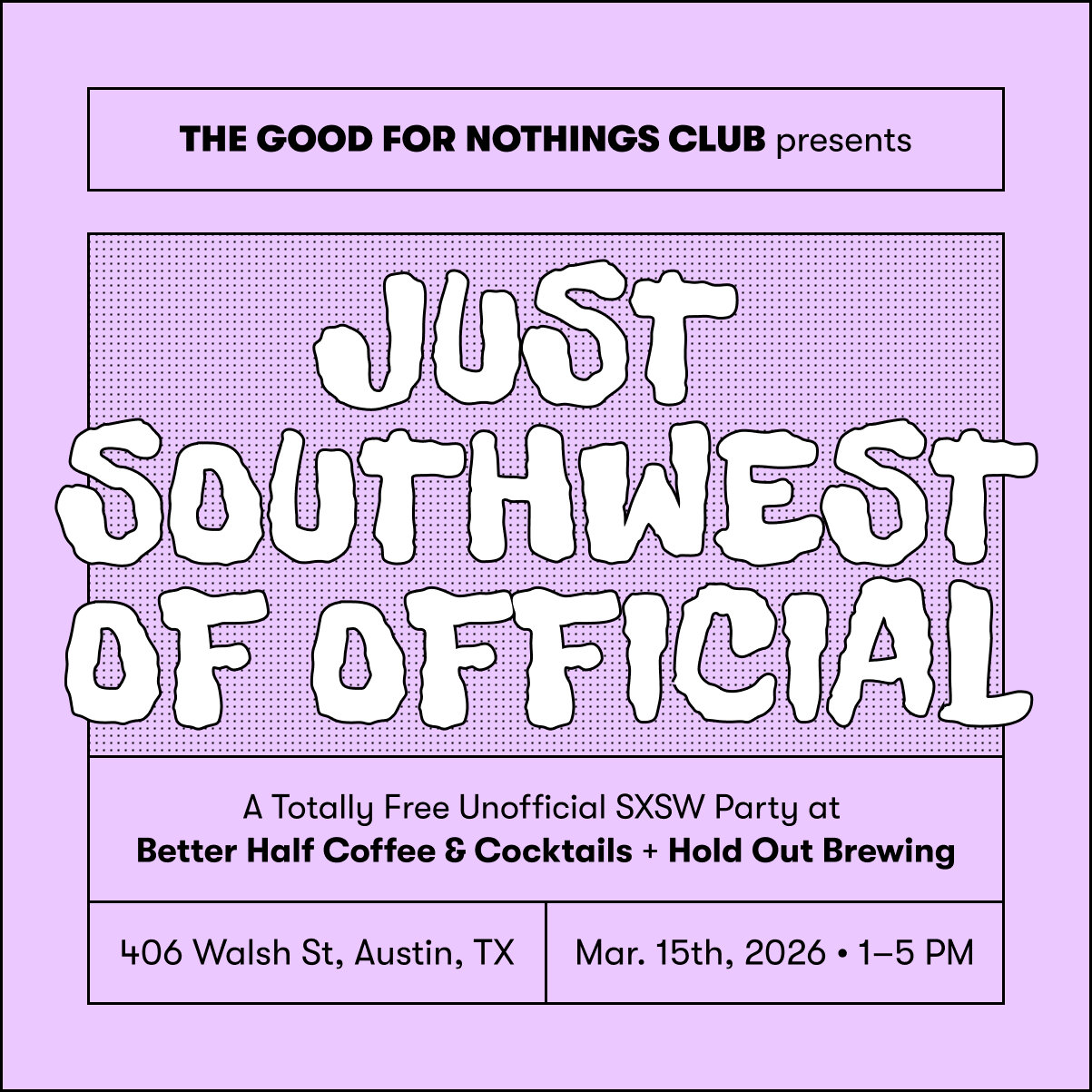 A Totally Free Unofficial SXSW Party Hosted by The Good for Nothings Club Come by Better Half Coffee & Cocktails + Hold Out Brewing for all sorts of shenanigans, including: […]
